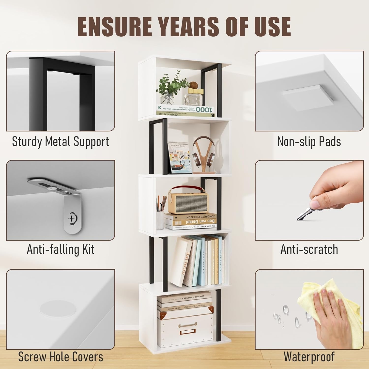 Elevate any room—whether it’s a living room, bedroom, or home office—with a piece that blends function and modern design. The white 5-tier S-shaped bookcase brings order, light, and a touch of geometric elegance to your space, helping you create a calm, organized environment that inspires focus and creativity.